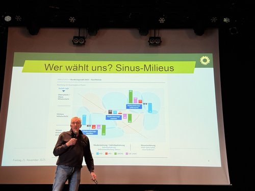 Im Anschluss analysierte Josef Voß, wer unsere Wähler*innen sind und welche Erwartungen sie an GRÜNE Politik in der Kommunalpolitik haben. Er betonte, wie wichtig ein klar gestaltetes „politisches Schaufenster“ ist, da umfangreiche Programme zunehmend weniger wahrgenommen werden. Entscheidend sei, die richtigen Themen sichtbar zu machen und zielgerichtet zu kommunizieren.