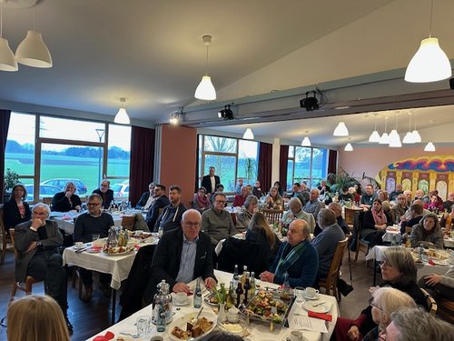 Die Begrüßung übernahm Gerhard Thiel (OV Syke), der maßgeblich die Organisation des Empfangs verantwortete. Er hieß die Gäste herzlich willkommen und hob die Bedeutung des Westflügels als Ort politischer und kultureller Begegnung hervor. Im Anschluss stellte Nora Krönig, Geschäftsführerin des Westflügels, ihre Einrichtung vor und unterstrich deren Rolle als sozialer, kreativer und gesellschaftlicher Treffpunkt in Syke.